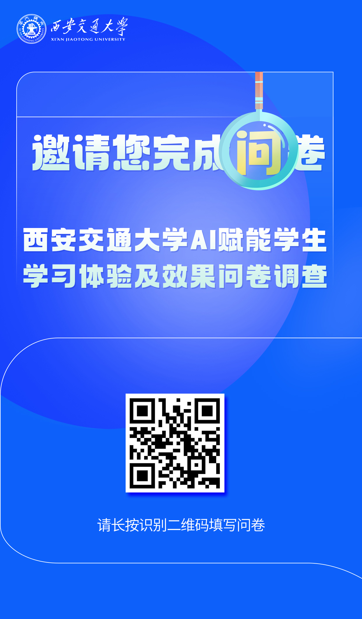 为掌握AI赋能学生学习体验及效果,促进教学改革,教师教学发展中心联合教务处、学生处现开展AI赋能学生学习体验及效果问卷调查。调查时间为2025年12月15日至2025年12月31日,问卷采用匿名形式。诚邀您认真、客观填写,感谢您的支持与配合!